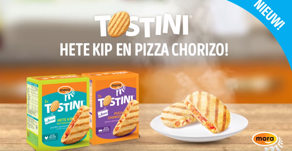 Mora heeft twee nieuwe varianten van de Tostini gelanceerd: Mora Tostini Hete Kip en de Pizza Chorizo. De Tostini is een snelle snack die bij voorkeur in de broodrooster of grill klaar gemaakt kan worden.